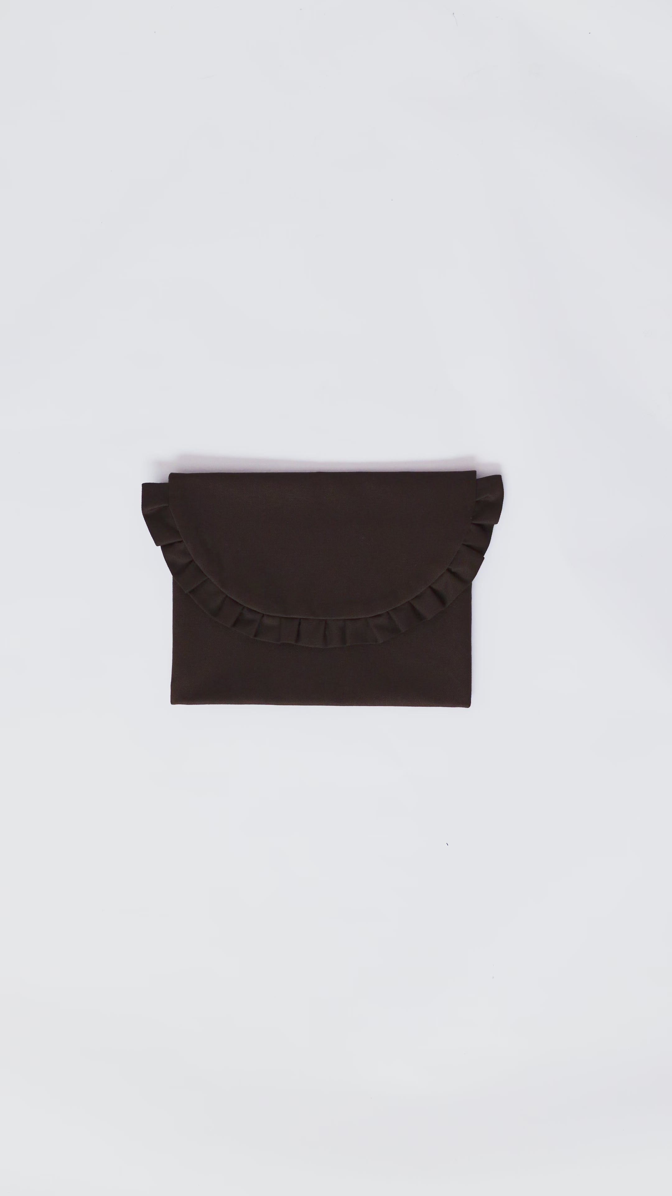 Nagiet est une pochette en tissu qui allie délicatesse et praticité. Sa forme épurée est relevée par un froufrou au niveau du rabat, détail subtil qui lui apporte une touche bohème et féminine, fidèle à l’esprit de Makalia.