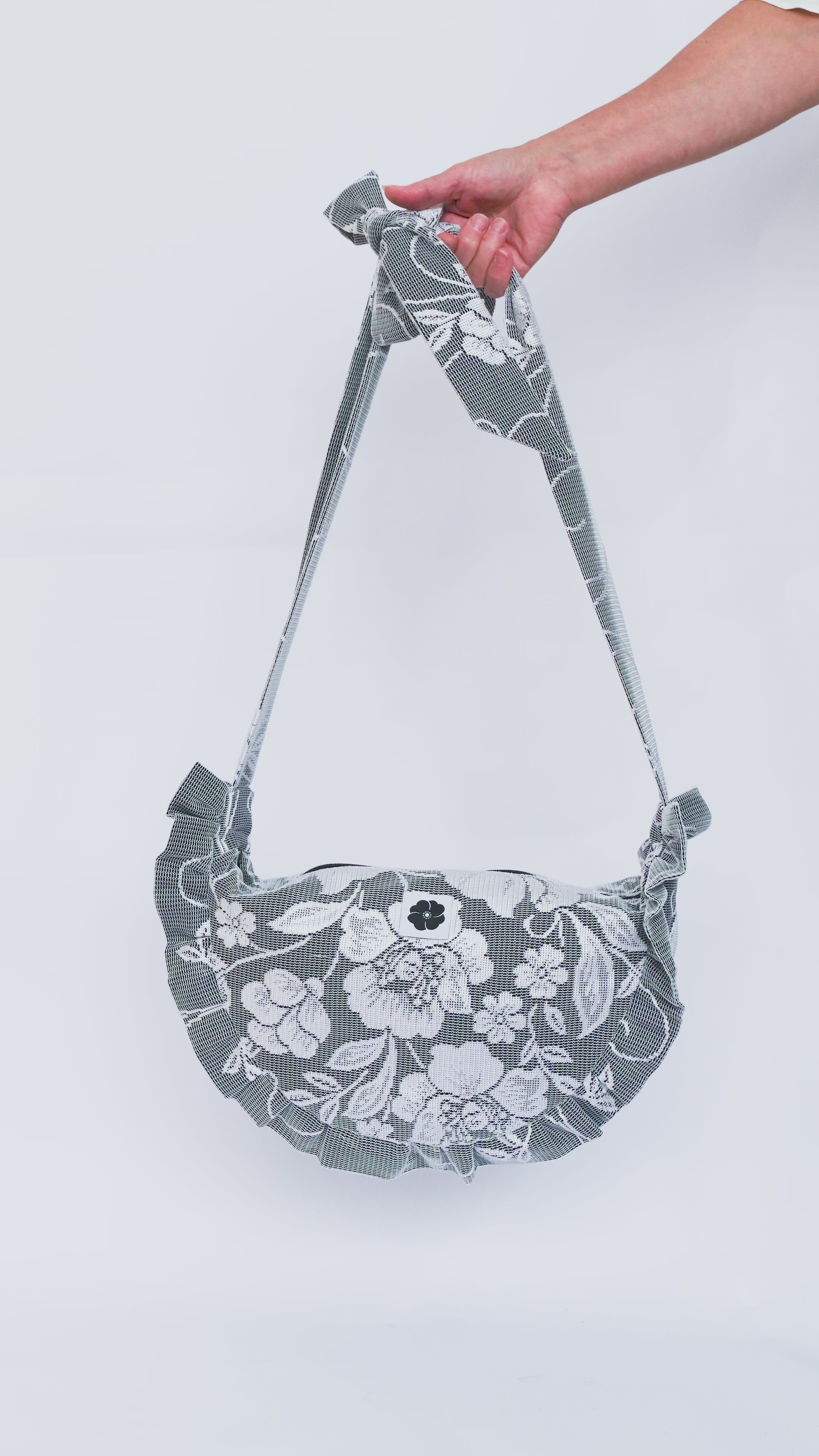 L’intérieur, doublé avec soin, comprend deux poches pour garder vos affaires bien organisées. La fermeture éclair solide assure une utilisation fluide et sécurisée. Les froufrous qui bordent le sac ajoutent cette touche de fantaisie et de délicatesse propre à l’univers de Makalia, où chaque détail est pensé pour mêler practicité et poésie.
